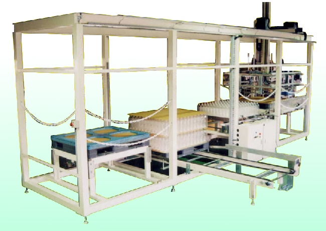 PETボトルなどの容器をパレットに積み上げる機器です